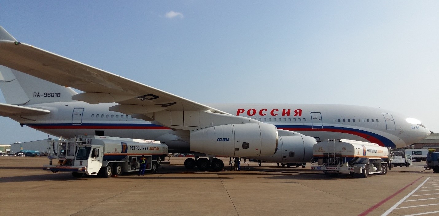 Petrolimex Aviation tra nạp cho các chuyến bay đặc biệt của hãng Hàng không Quốc gia Nga (Aeroflot) chở Thủ tướng Nga Medvedev và đoàn ngoại giao tại Cảng Hàng không Quốc tế Nội Bài ngày 5/4/2015
