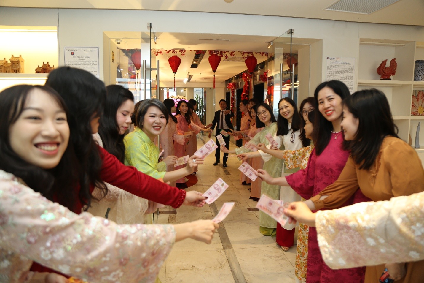 Những lời chúc đầu xuân vang lên khắp hành lang. Những cái bắt tay thật chặt, những nụ cười còn nguyên dư vị Tết khiến không khí ngày làm việc đầu tiên trở nên đặc biệt. Có chút rộn ràng, có chút hào hức, như cảm giác bắt đầu một hành trình mới mà ai cũng mong chờ.